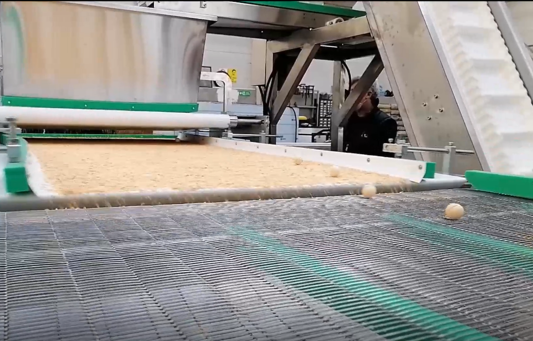 Es la máquina utilizada para recubrir el producto recubierto de chocolate de forma redonda que sale de la máquina recubridora de chocolate con partículas de avellana. El producto a recubrir pueden ser diferentes productos como coco, pistacho, confitería.